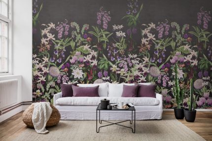 Fototapetul personalizat 3D Perspective Jardin, Noir, de la Rebel Walls, este încântător, plin de viață și culoare, cu efect de