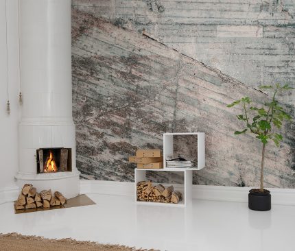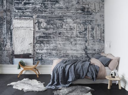 Un fototapet pentru iubitorii de „shabby chic”, acest farmec boem se împletește cu elementele rustice într-o prezentare artistică. Lemnul decolorat