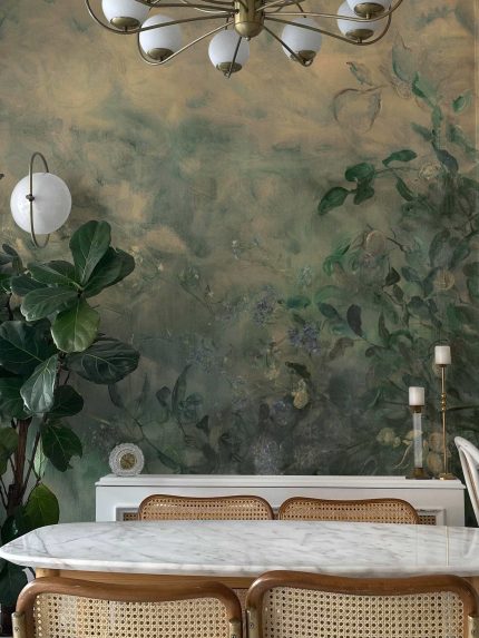 Îmbracă-ți pereții cu acest model abstract. Nuanțele de verde și gri creează un efect vizual liniștitor și modern. Ideal pentru