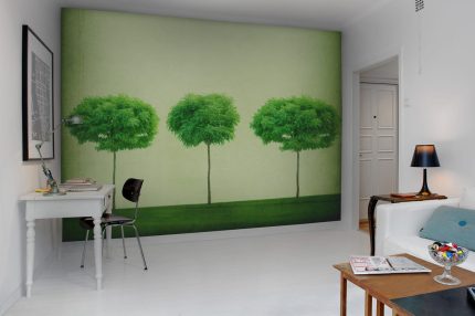 Plantează câțiva copaci în casa ta. Acest fototapet nu are nevoie de apă sau lumina soarelui, dar oferă totuși aceeași