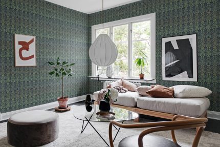 Cu alegerea fototapetului, poți schimba întreaga atmosferă a camerei. Aici, cu cărămizile gri de beton de mărime medie cu patru