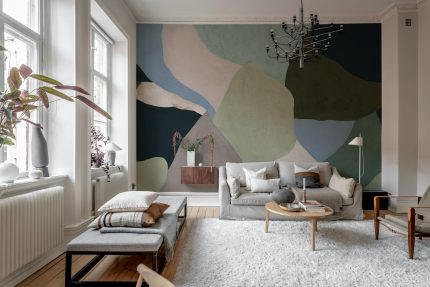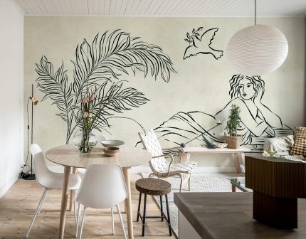 Transformați-vă spațiul cu acest tapet hipnotizant albastru deschis suprapus. Designul complicat prezintă forme moi, curgătoare, care dansează pe suprafață, creând
