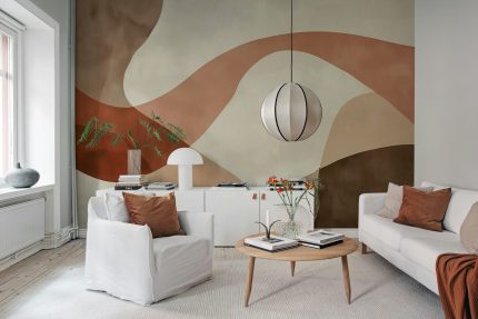 Transformă-ți spațiul cu un tapet artistic. Creează un ambient modern și sofisticat cu acest design abstract, în nuanțe calde de