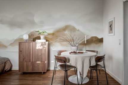 Transformă-ți casa cu un fototapet bej, ce redă un peisaj montan delicat. Creează o atmosferă relaxantă și elegantă în orice
