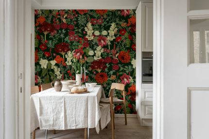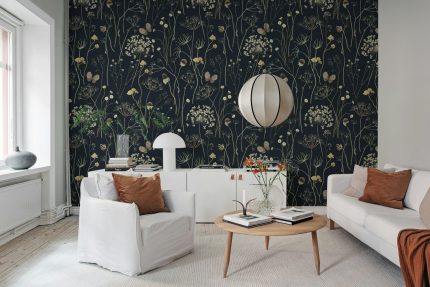 Descoperă o tapiserie de eleganță botanică cu Flower Art, Blue, un tapet care celebrează arta naturii printr-un model viu de