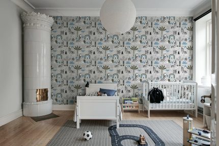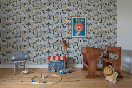 Introduceți un strop de bucurie în spațiul dumneavoastră cu Happy Zebra, Blue. Acest tapet jucăuș aduce o notă veselă interioarelor