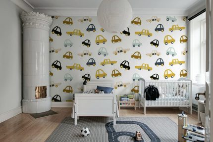 Încarcă spațiul tău cu mișcare și veselie cu tapetul nostru Cars, Blue. Acest model jucăuș, care prezintă o serie de
