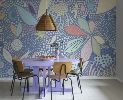 Lăsați liniștea să înflorească pe pereții dvs. cu Flower Garden, Blue – un design de tapet care șoptește o melodie