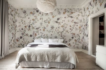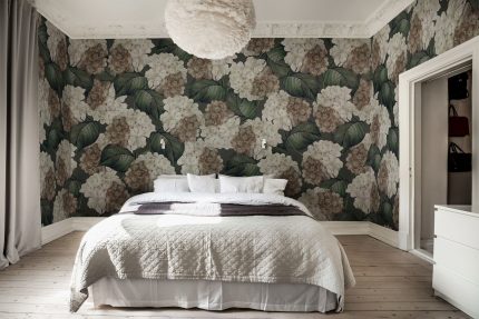Această model cu hortensii mari acoperă peretele cu o îmbrățișare caldă și moale și oferă un efect wow, dar într-un