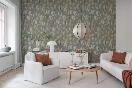 Creșteți atmosfera oricărei camere cu extraordinarul nostru tapet Ocean Shells, Graphite. Afundați-vă în lumea fascinantă a oceanului, unde frumusețea delicată