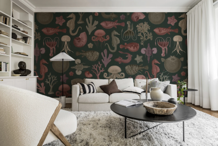 Transformă-ți pereții într-un paradis subacvatic încântător cu tapetul nostru fascinant Sea Life, Sand, care prezintă o ilustrație rafinată a lumii
