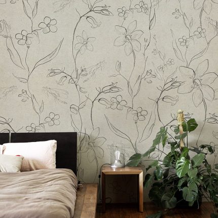 Fine Intaglio Field Paper Texture, VLAdiLA este un tapet cu un design minimalist și elegant, cu flori și insecte desenate