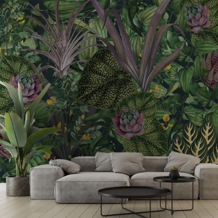 Descoperă frumusețea naturii cu acest Green Jungle. Cu frunze luxuriante și flori vibrante, acest tapet va transforma orice cameră într-un