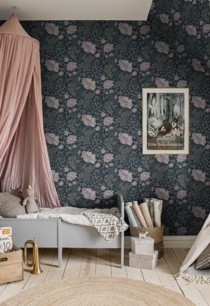 Rosetta, Midnight Blue Luxury Leaf, 1838 Wallcoverings, 5.3mp / rola