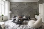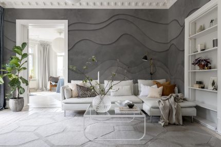 Undele moi în diferite straturi adaugă profunzime și dinamism încăperii.