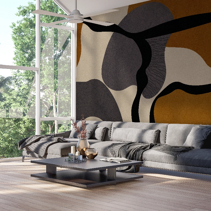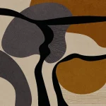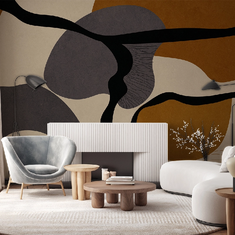 Acest tapet cu design abstract în nuanțe de teracotă, gri și negru va adăuga o notă de eleganță și originalitate oricărei camere.