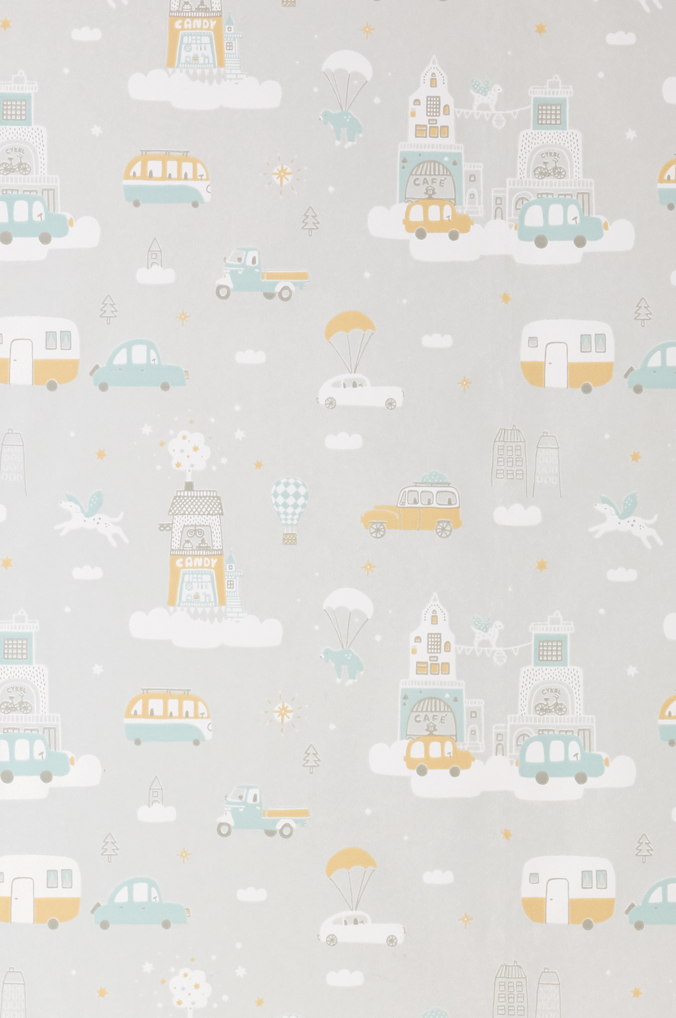 Acest tapet cu un design unic si vesel, cu masini si case pe nori, va transforma camera copilului dumneavoastra intr-un loc magic si plin de fantezie. Culorile pastelate si motivele simpatice il vor face pe micutul dumneavoastra sa se simta in siguranta si fericit in propria sa camera. Tapetul este ideal pentru camerele copiilor de toate varstele, de la bebelusi pana la adolescenti.