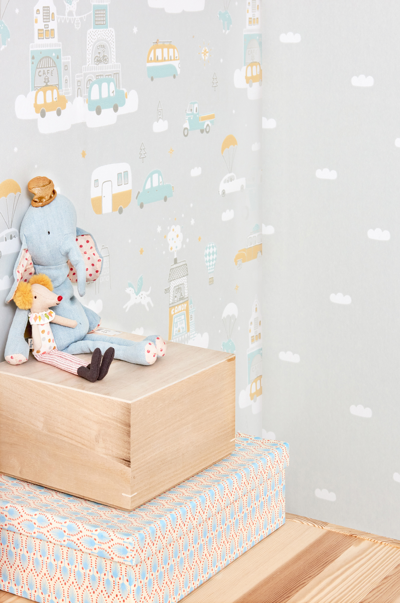 Tapetul Above the Clouds este disponibil in mai multe culori si modele, astfel incat sa puteti alege varianta perfecta pentru camera copilului dumneavoastra.