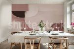 Transformă-ți casa cu acest fototapet abstract! Design modern, elegant, cu forme abstracte și nuanțe de burgundy, ideal pentru un interior sofisticat.