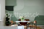 Adaugă un plus de eleganță cu acest fototapet! Forme abstracte în tonuri de verde, perfecte pentru un decor modern și sofisticat. Ideal pentru living sau birou.