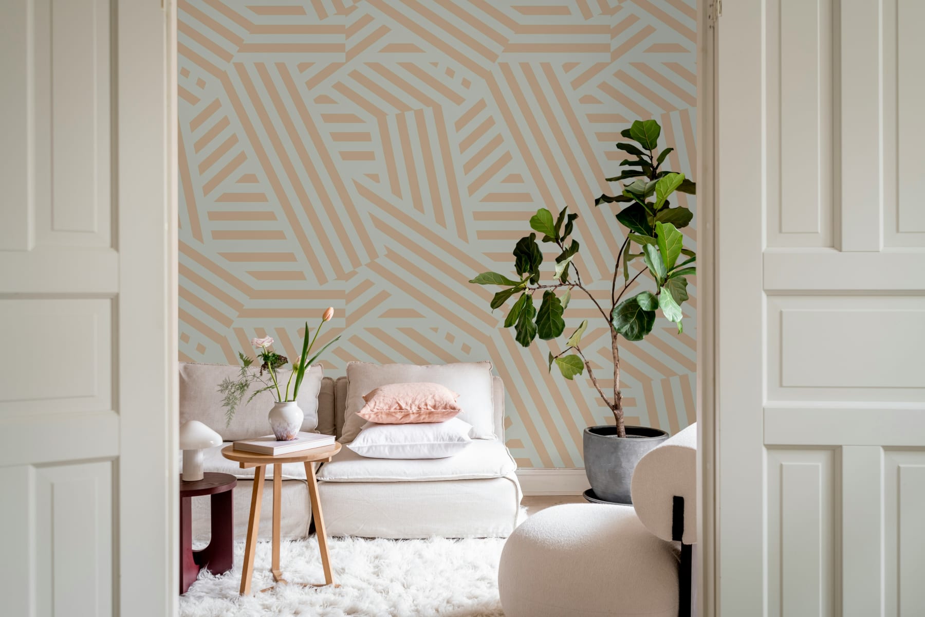 Abstract Stripes, Peach & Pearl, Rebel Walls