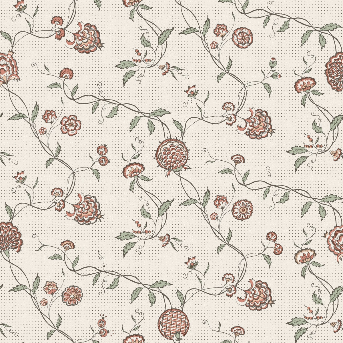 Inspirat de modelele florale ale țesăturilor franceze cunoscute sub numele de Les Indiennes. Aceste flori exotice datează de la mijlocul secolului al XVII-lea, când comercianții care locuiau în Marsilia le importau din India pentru fabricarea de îmbrăcăminte. Mai târziu au devenit motive populare pentru hârtiile Domino, precursorii tapetului, care au fost folosite pentru a căptuși cutii de călătorie, mobilier, cutii de pălării și cărți.