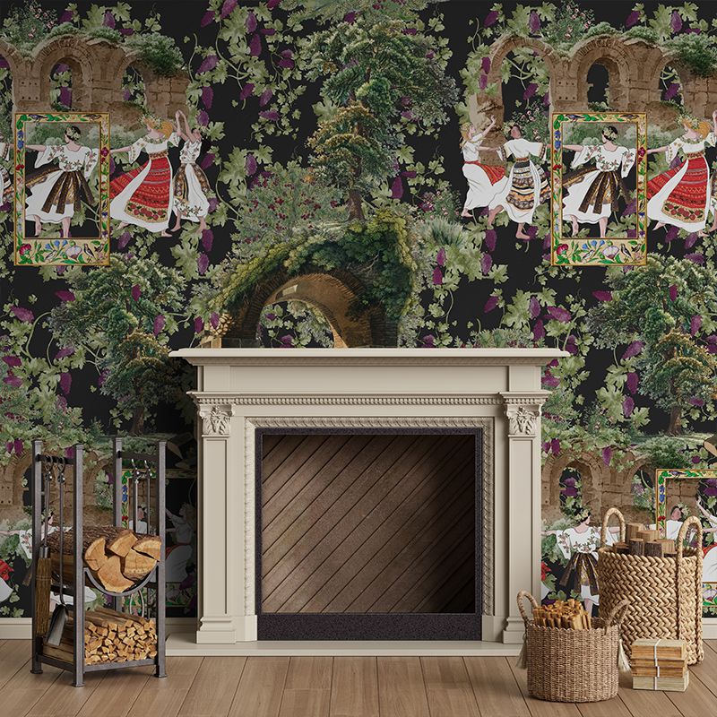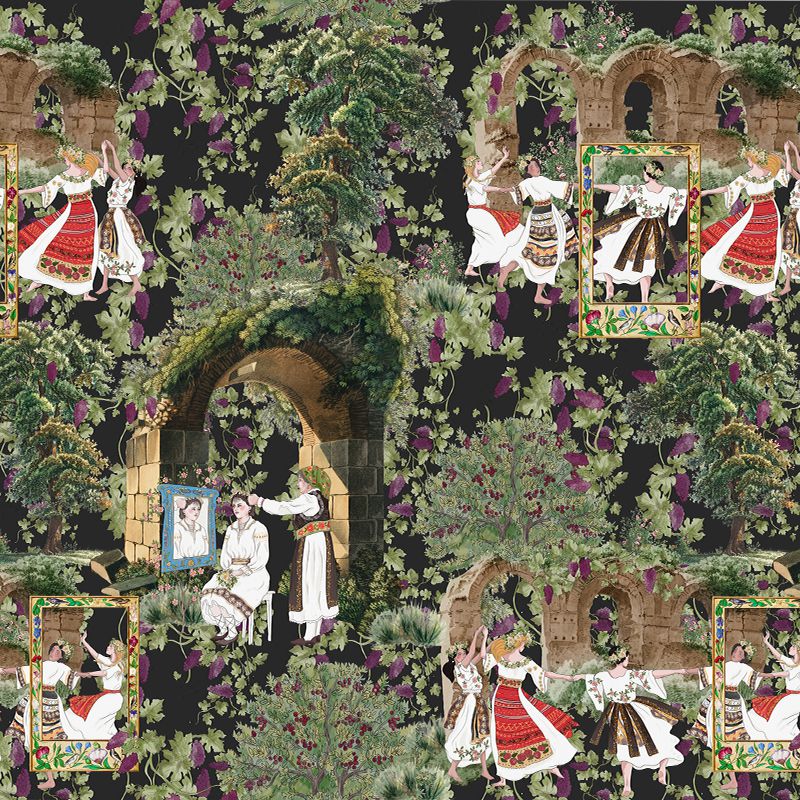 Amurg (negru) este un tapet cu un design inedit, care aduce un aer romantic si nostalgic in orice incapere. Cu un fundal inchis, pe care se potrivesc perfect detaliile cu nuante pastelate, acest tapet este perfect pentru a crea o atmosfera intima si calda. Designul este inspirat de arta populara romaneasca si surprinde frumusetea si eleganta traditiilor noastre. Imaginile cu dansatori, fete in costume traditionale si natura luxurianta, toate reunite pe un fundal inchis, creeaza un contrast elegant si o atmosfera unica. Amurg (negru) este o alegere perfecta pentru cei care doresc sa aduca un strop de traditie si romantism in casa lor.