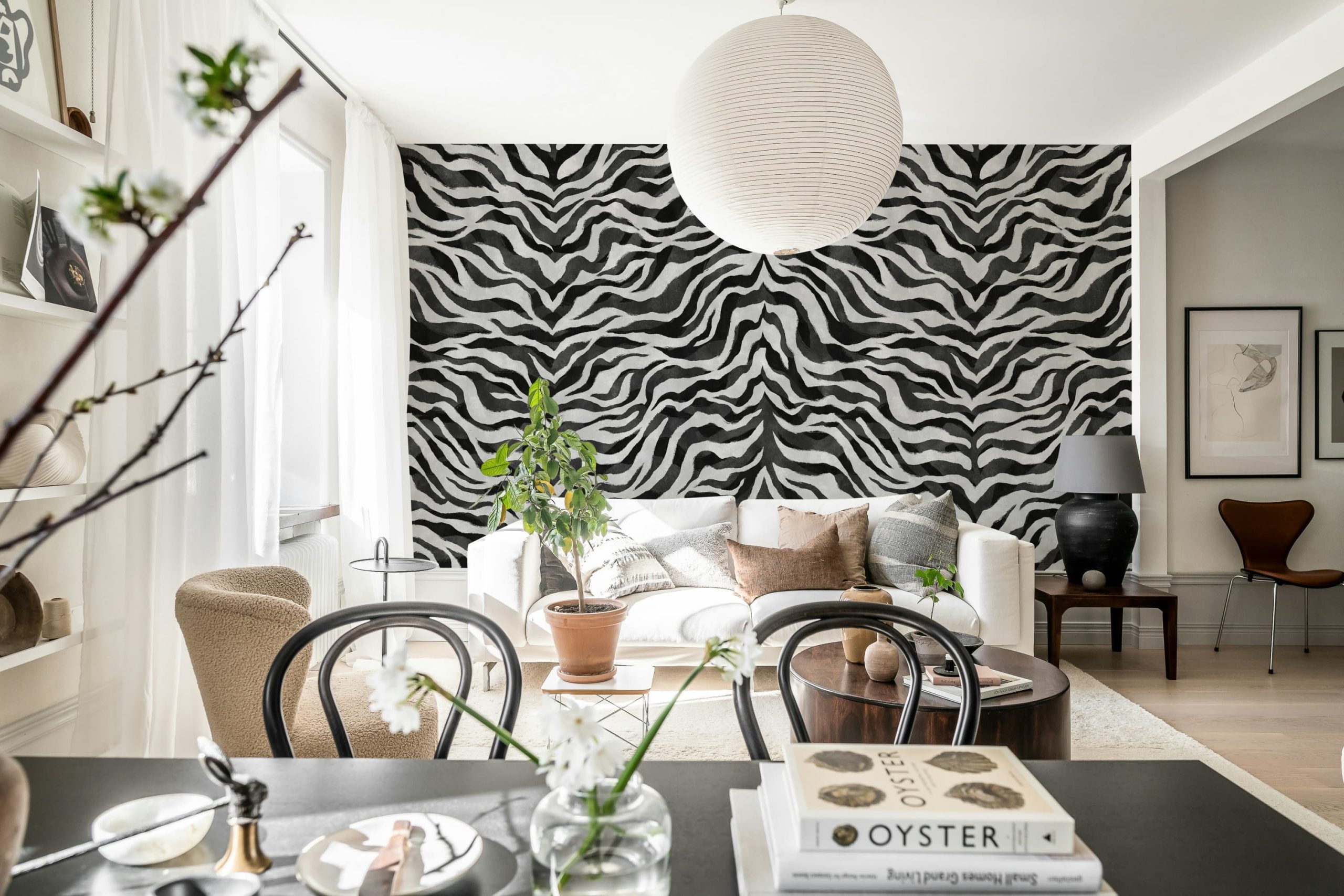 Transformă-ți locuința cu acest tapet îndrăzneț! Modelul abstract în alb și negru adaugă un plus de stil și originalitate oricărui spațiu. Ideal pentru un decor modern și sofisticat.