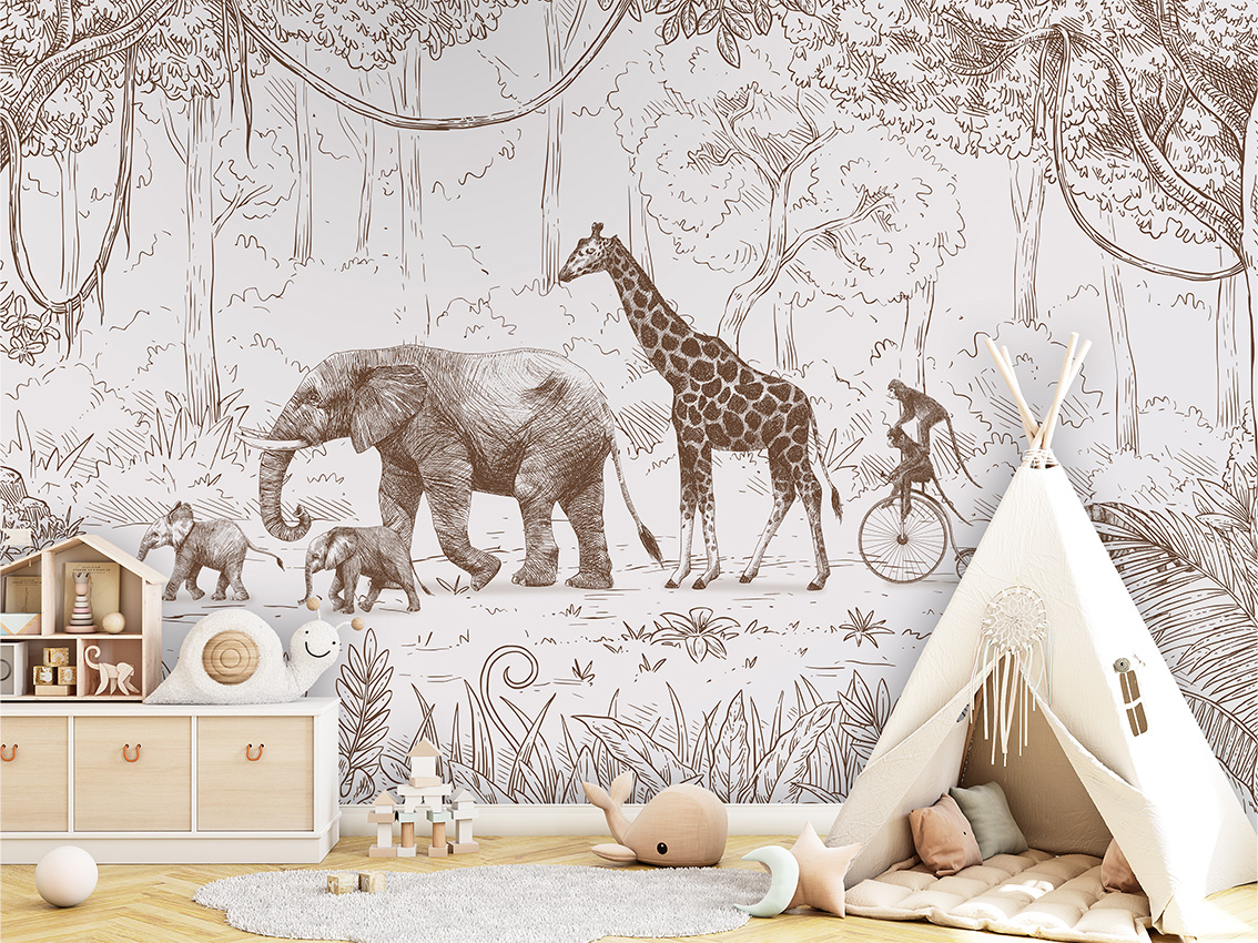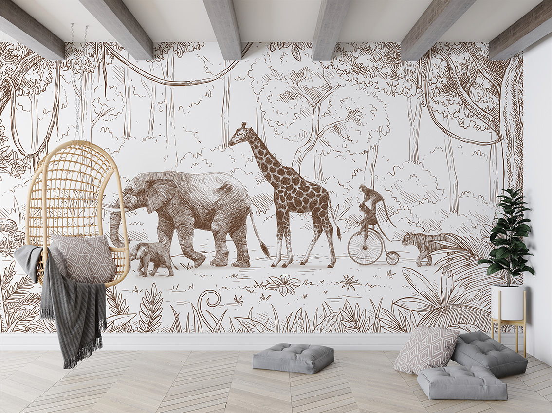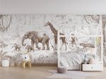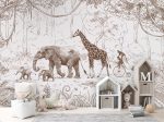 Acest Animal Parade – Brown vă va transporta într-o junglă plină de viață, cu un desen delicat și detaliat, care aduce un aer unic și modern în orice cameră. Imaginile cu animalele din pădurea tropicală, în stil vintage, adaugă o notă de aventură și o atmosferă relaxantă, perfectă pentru a crea un ambient cald și primitor. Culoarea brună a desenului se integrează armonios în diverse scheme de design, adăugând un strop de personalitate și o notă naturală. Adăugați o notă exotică spațiului dumneavoastră cu Animal Parade – Brown!