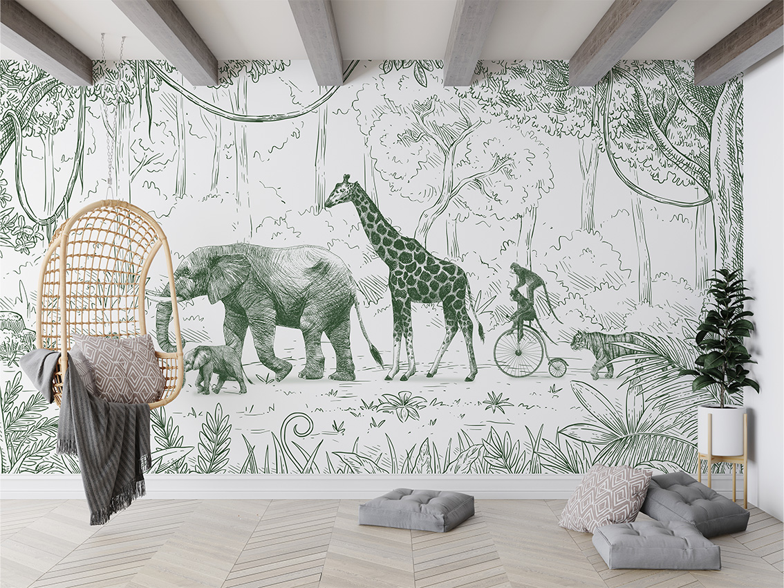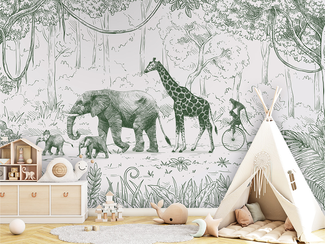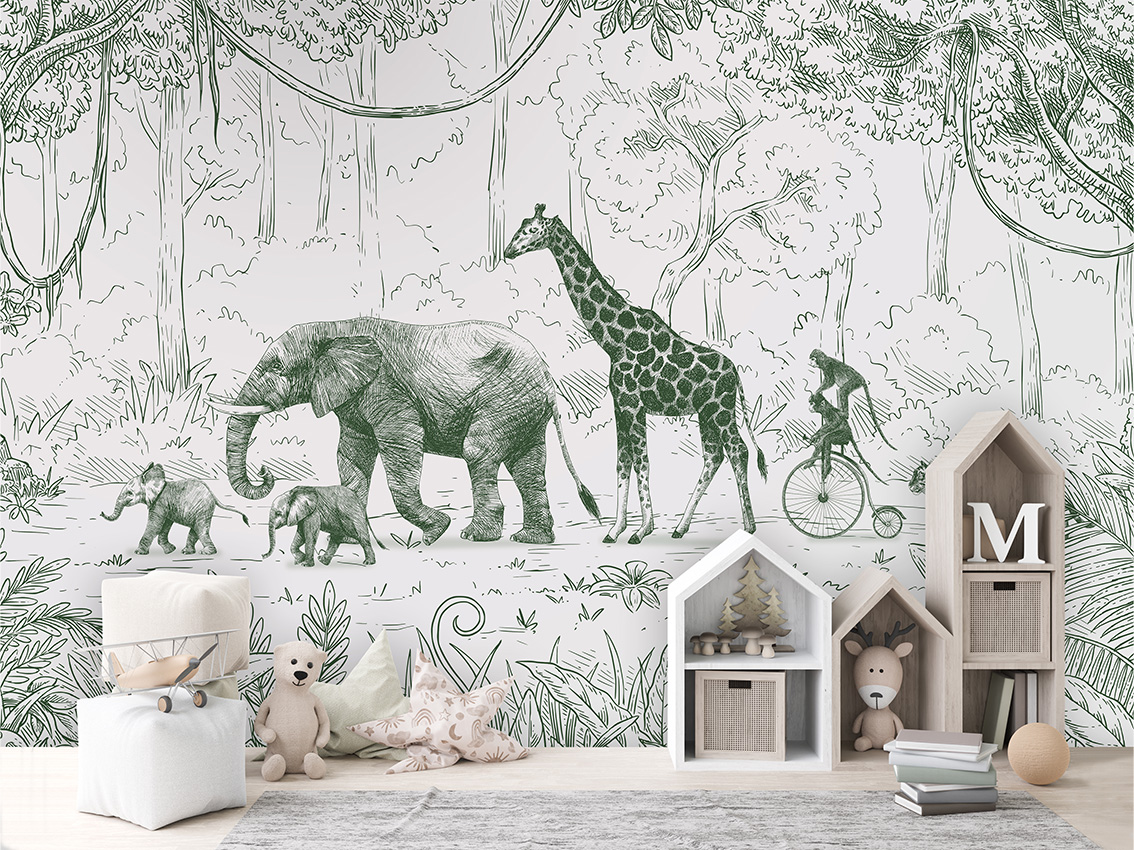 Personalizați spațiul cu un Animal Parade – Green, o interpretare unică a junglei cu animale desenate în verde pe un fundal alb. Acest desen va transforma orice cameră în locuința perfectă pentru o aventură în natură, adăugând o notă de magie și creativitate.
