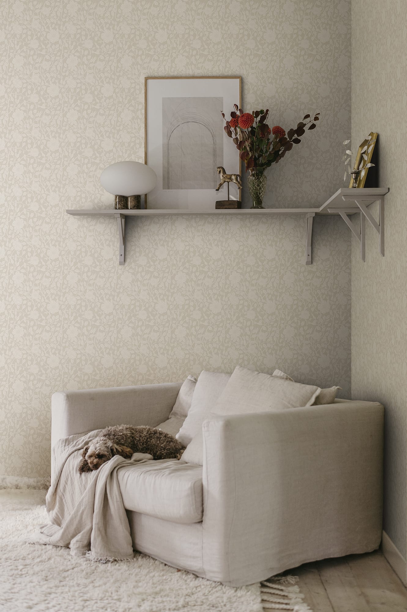 Acest model favorit recent reînviat prezintă trandafiri sălbatici stilizați într-un design dens, organic. Funcționează minunat pe toți cei patru pereți și se potrivește bine cu tovarășii cu modele mai îndrăznețe. Anton, Sandstone, este îmbrăcat în nuanțe calde de bej de gresie.