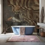 Alege Vintage Blue Tiles pentru un aspect elegant și rafinat în baie. Designul cu dale albastre și albe creează o