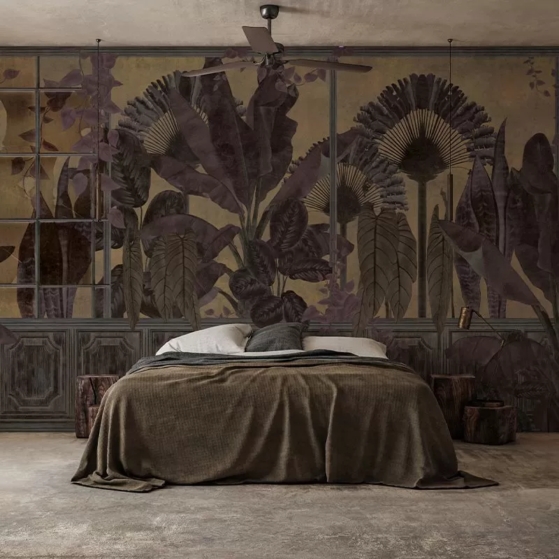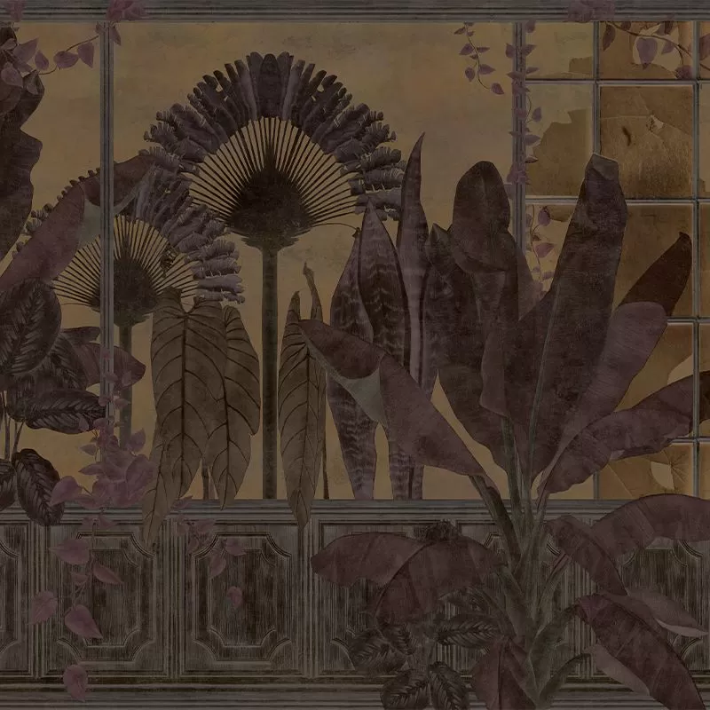 Modelul de tapet Arboretum propune un decor extrem de elegant, în care frunzele glorioase ale plantelor exotice domină mare parte din imagine. Cadrul din lemn masiv, cu ornamente aplicate, încadrează sera într-un stil de amenajare de tip vintage. Geamurile atent realizate ofera contextului transparențe și textură, surprinzând prin nota de autenticitate pe care o conțin.