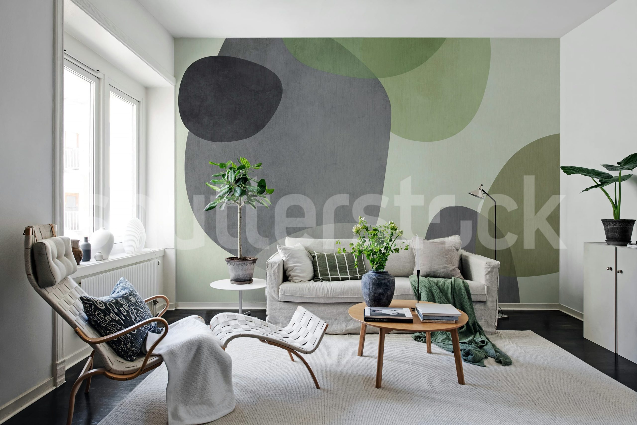 Îmbracă-ți pereții cu acest model abstract. Nuanțele de verde și gri creează un efect vizual liniștitor și modern. Ideal pentru un decor sofisticat și relaxant.