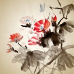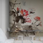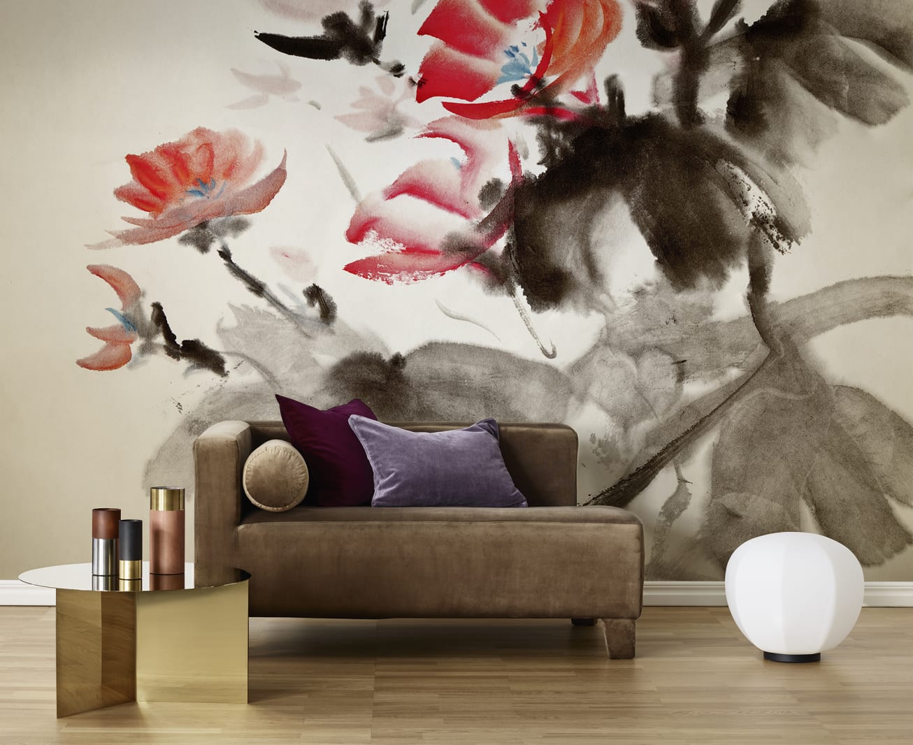 Mișcări distincte, ușoare, aerate de pensulă dau conturul florilor asiatice. Acest fototapet floral este totodată puternic și delicat.