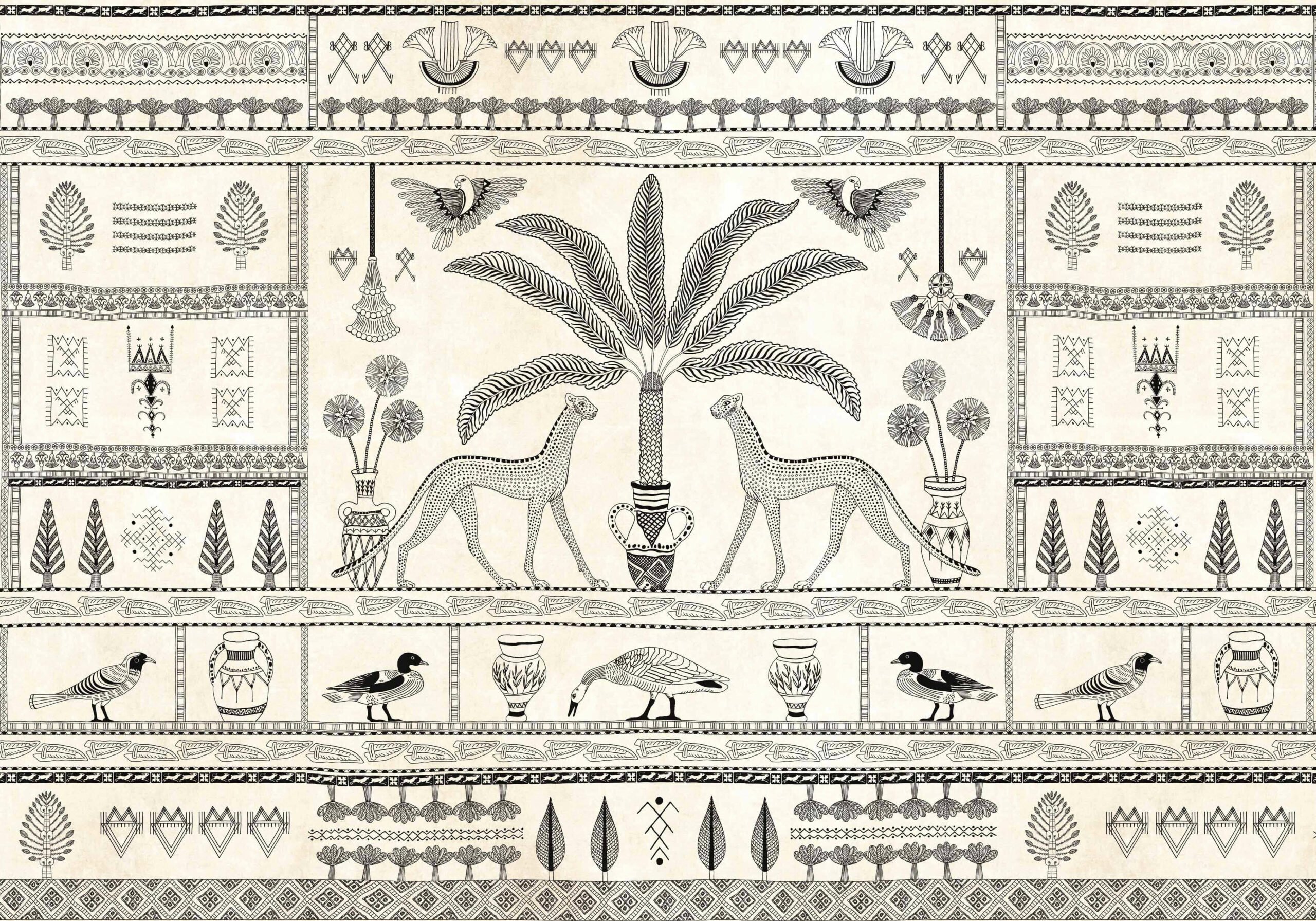Tapetul lavabil Asni Valley de la Coordone este un model inspirat de animale din colecția Berber și prezintă animale iconice împletite cu motive naturale și ornamente.