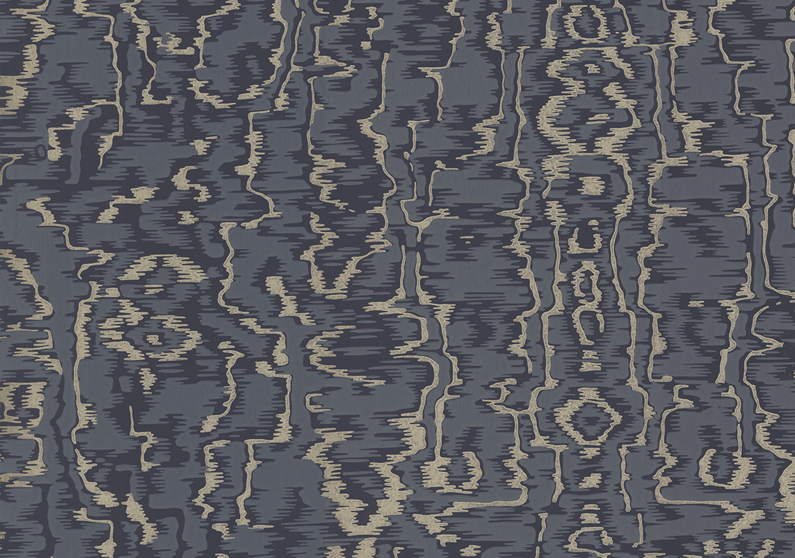 Avington, Navy Blue Luxury Moire, 1838 Wallcoverings, 5.3mp / rola