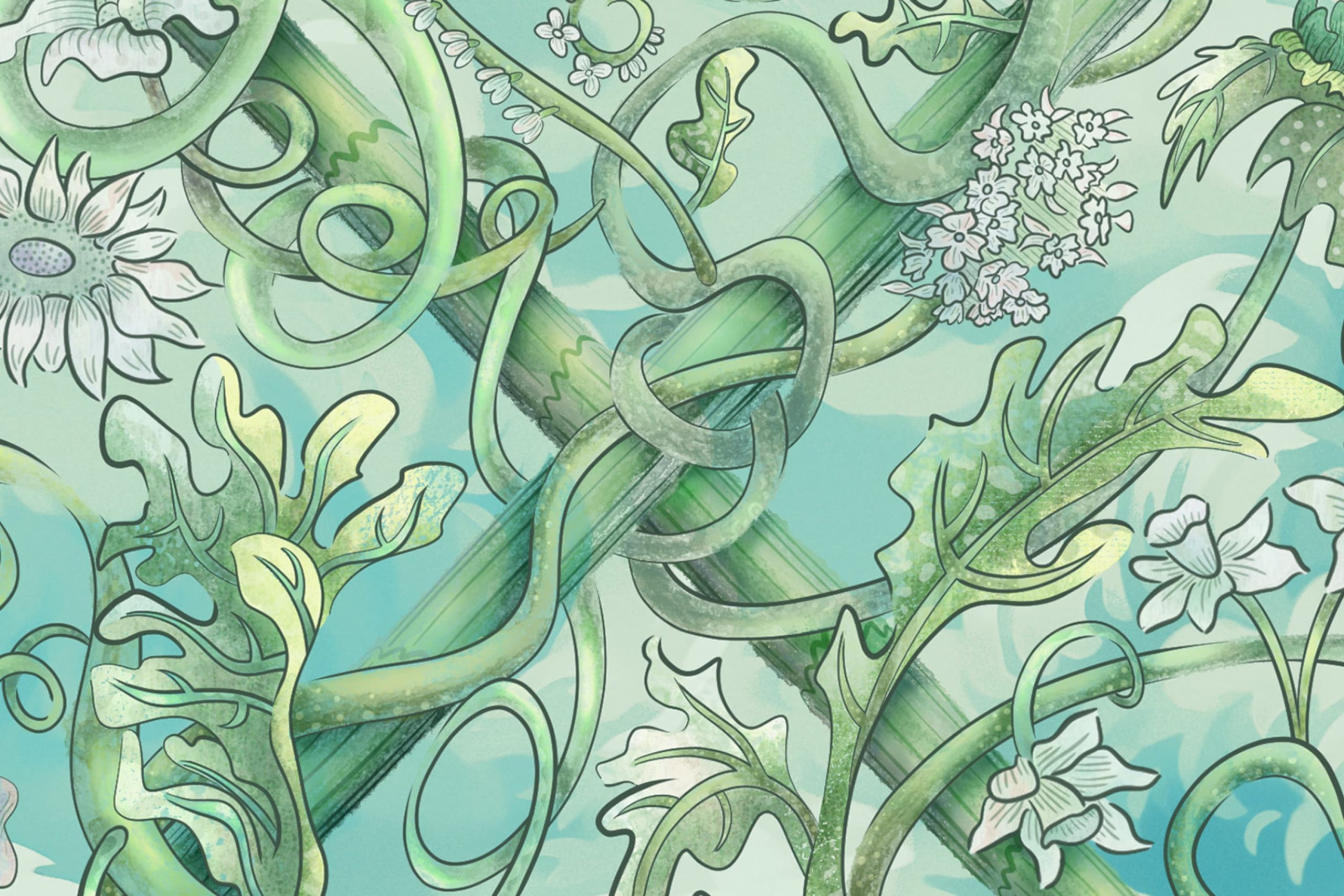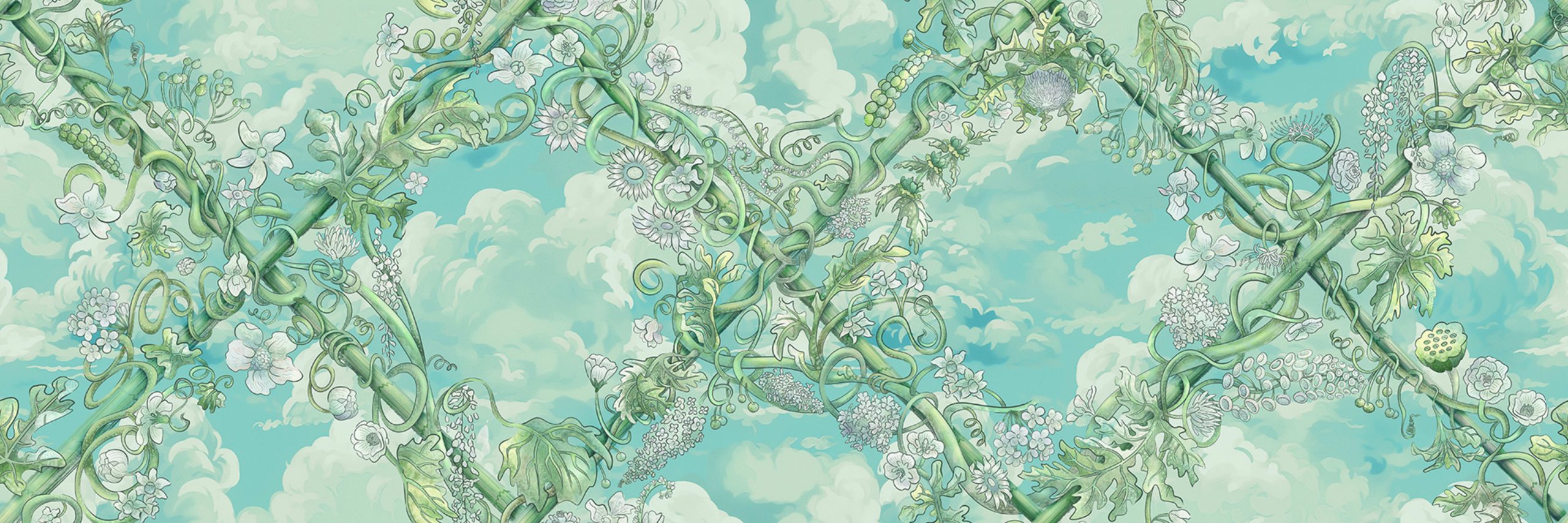 Adaugă un strop de natură interioarelor tale cu acest tapet superb. Modelul său delicat cu elemente vegetale și un fundal subtil cu nori va transforma orice cameră într-un spațiu relaxant și primitor.