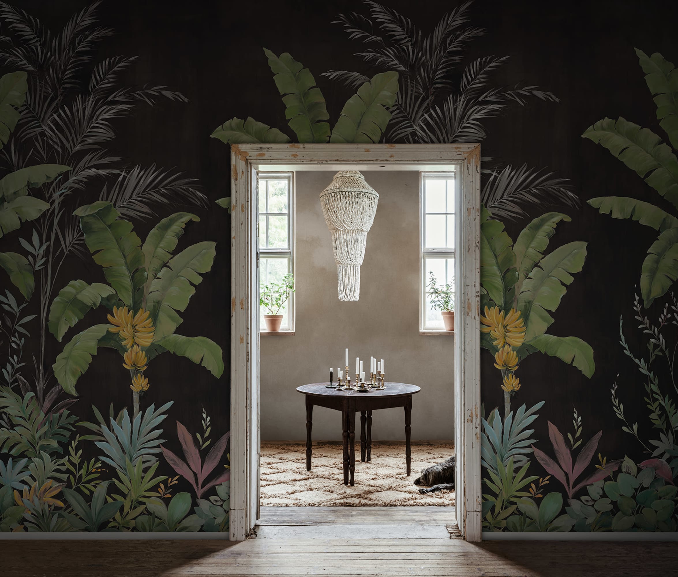 Home Tapet și Fototapet Banana Tree Jungle, Black, Rebel Walls