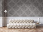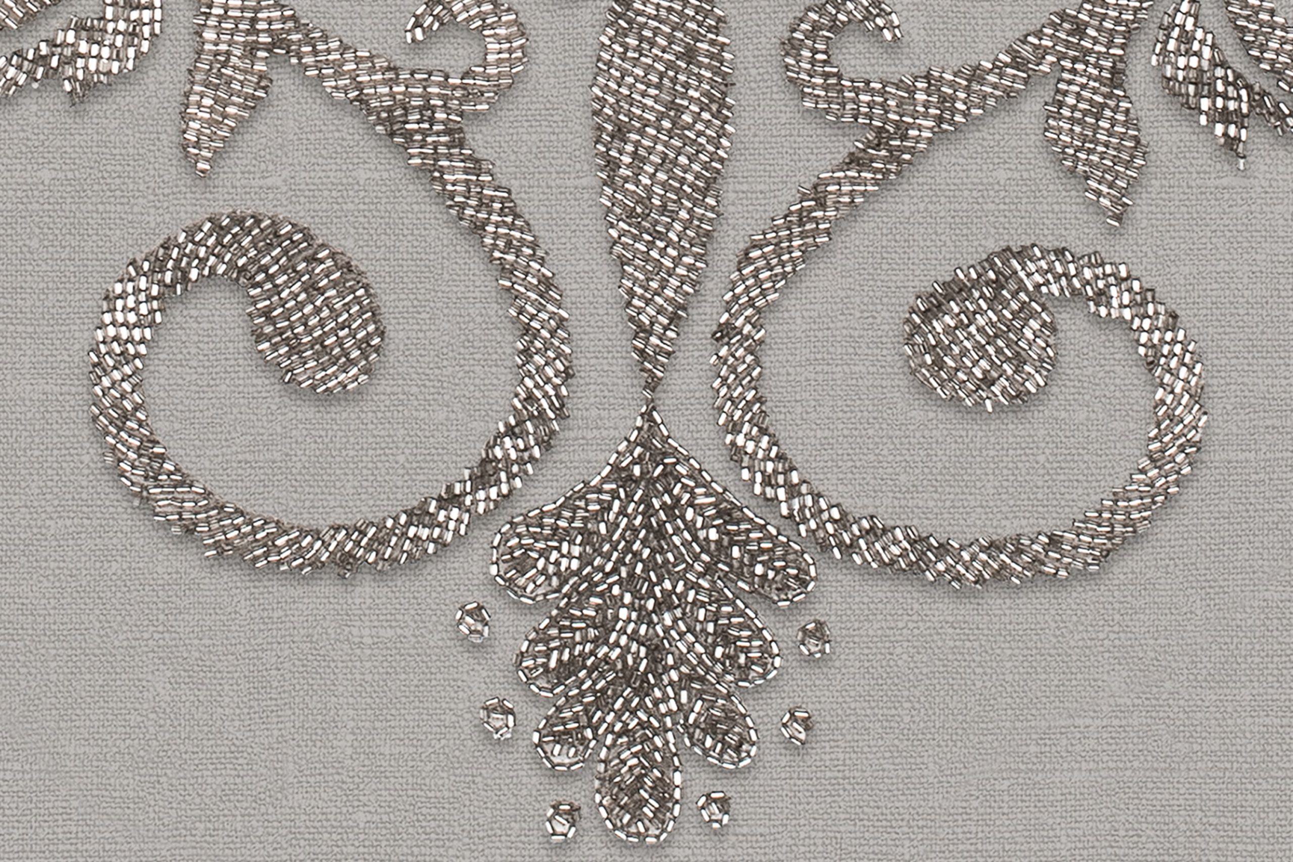 Baroque Pearl a fost concepută pentru o suită de nuntă și creează un efect de medalion opulent cu un model brodat manual cu paiete strălucitoare. Acest tapet are aspectul exclusivist al unui material textil vintage de înaltă calitate. Perfect pentru a crea o ambianță confortabilă și elegantă. Varianta Bege vine cu nuanțe calde de bej și paiete strălucitoare pe un fundal textil.