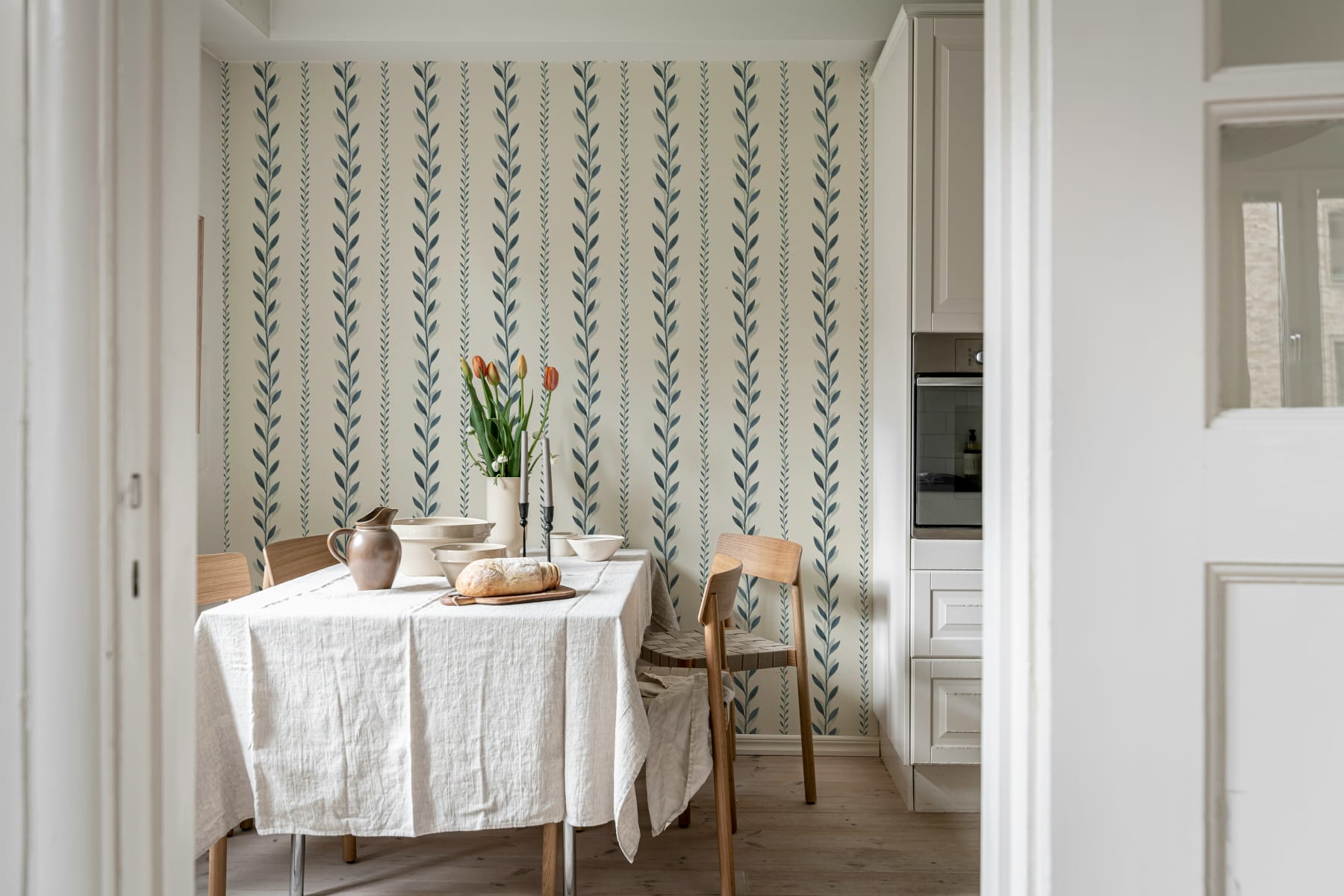 „Bayleaf Stripe, Blue” este un tapet sofisticat care îmbină eleganța clasică cu un twist modern. Dungile verticale sunt împodobite cu motive delicate de frunze de dafin, creând o ambianță senină și aerisită, perfectă pentru orice cameră. Tonurile reci de albastru evocă un sentiment de calm, făcând acest tapet o alegere ideală pentru un dormitor sau un living unde relaxarea este esențială. Fie că urmărești un stil inspirat de coastă sau pur și simplu iubești liniștea pe care o aduce albastrul, acest design adaugă un stil fără efort pereților tăi.