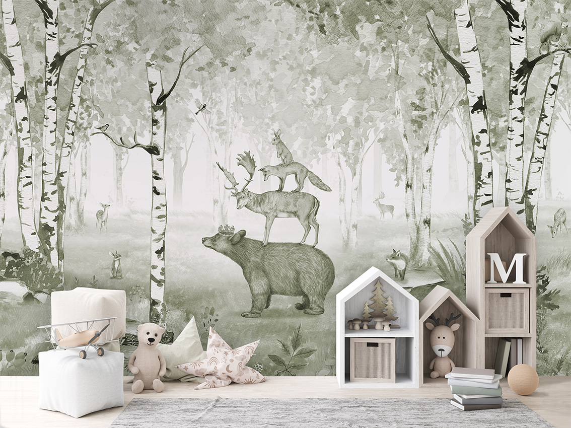 Home Tapet și Fototapet Bear King – Green, Kikki Belle