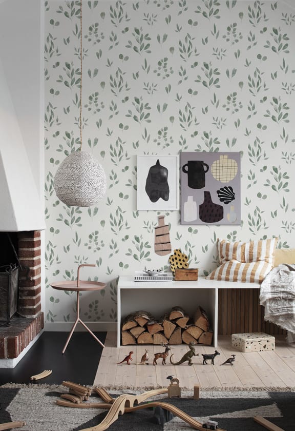 A avea Belle pe perete umple camera cu oxigen. Acuarela pictată manual aduce un sentiment de natură imediat după o ploaie blândă. Modelul este pur și face impresie fără a fi dominant; este un fundal subtil pentru toate camerele.