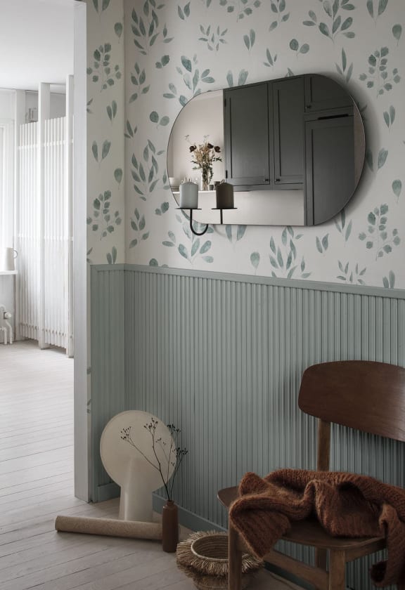 A avea Belle pe perete umple camera cu oxigen. Acuarela pictată manual aduce un sentiment de natură imediat după o ploaie blândă. Modelul este pur și face impresie fără a fi dominant; este un fundal subtil pentru toate camerele.