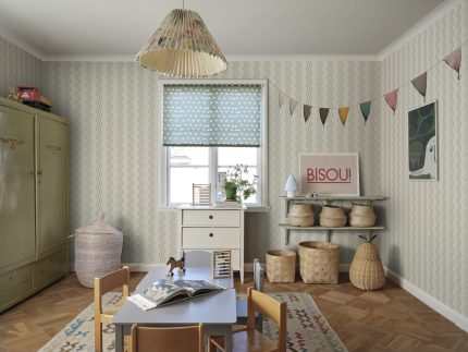Acest tapet clasic, cu dungi late, se potrivește perfect într-o încăpere modernă, precum și într-o amenajare mai tradițională. Tapet >