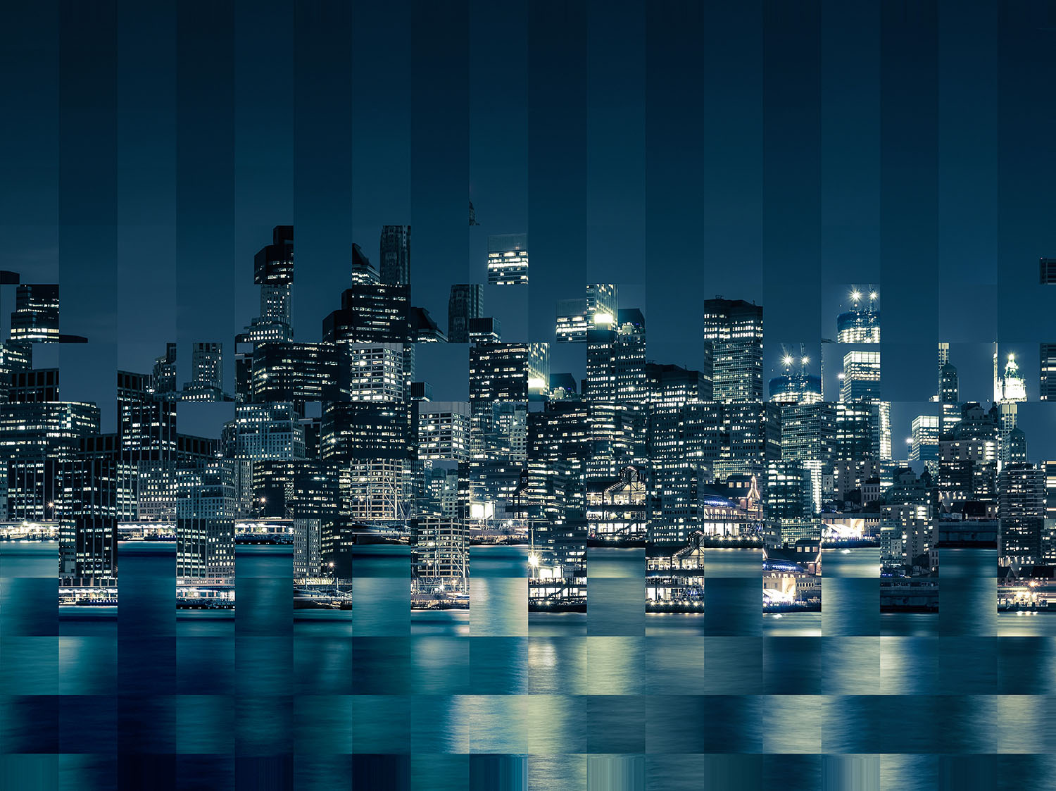 Îți plac dungile, pătratele și New York-ul? Atunci acesta este designul perfect pentru tine. Un fototapet grafic inspirat de orașul care nu doarme niciodată.