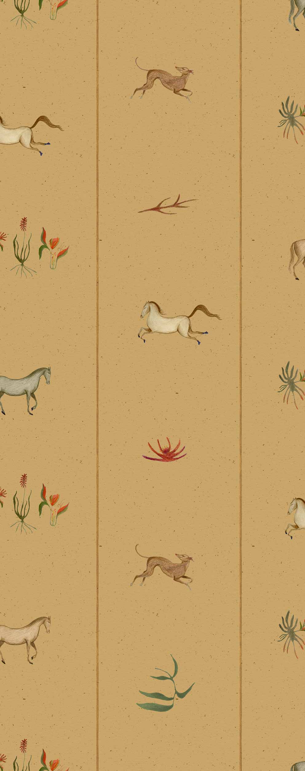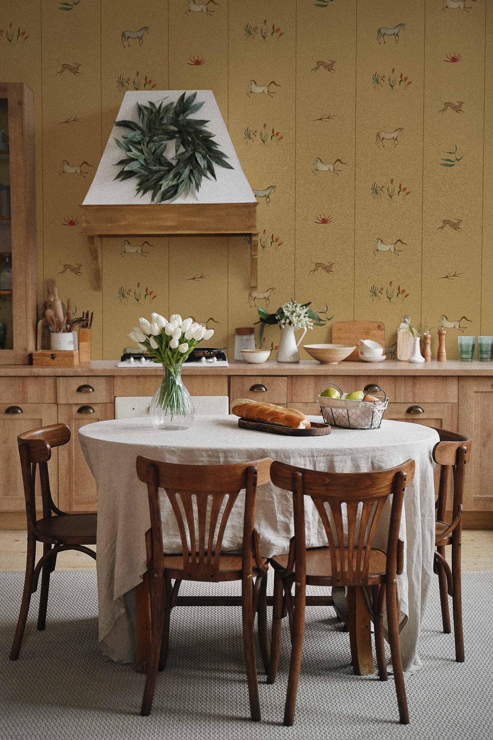 Tapetul Bike Ride, Curry de la Coordonné este un design cu animale în tonuri de galben/portocaliu din colecția Central Saint Martins – Rest Time. Plimbările cu bicicleta prin locuri fermecătoare, unde totul este încă de descoperit poate fi o prioritate în viața oricui.