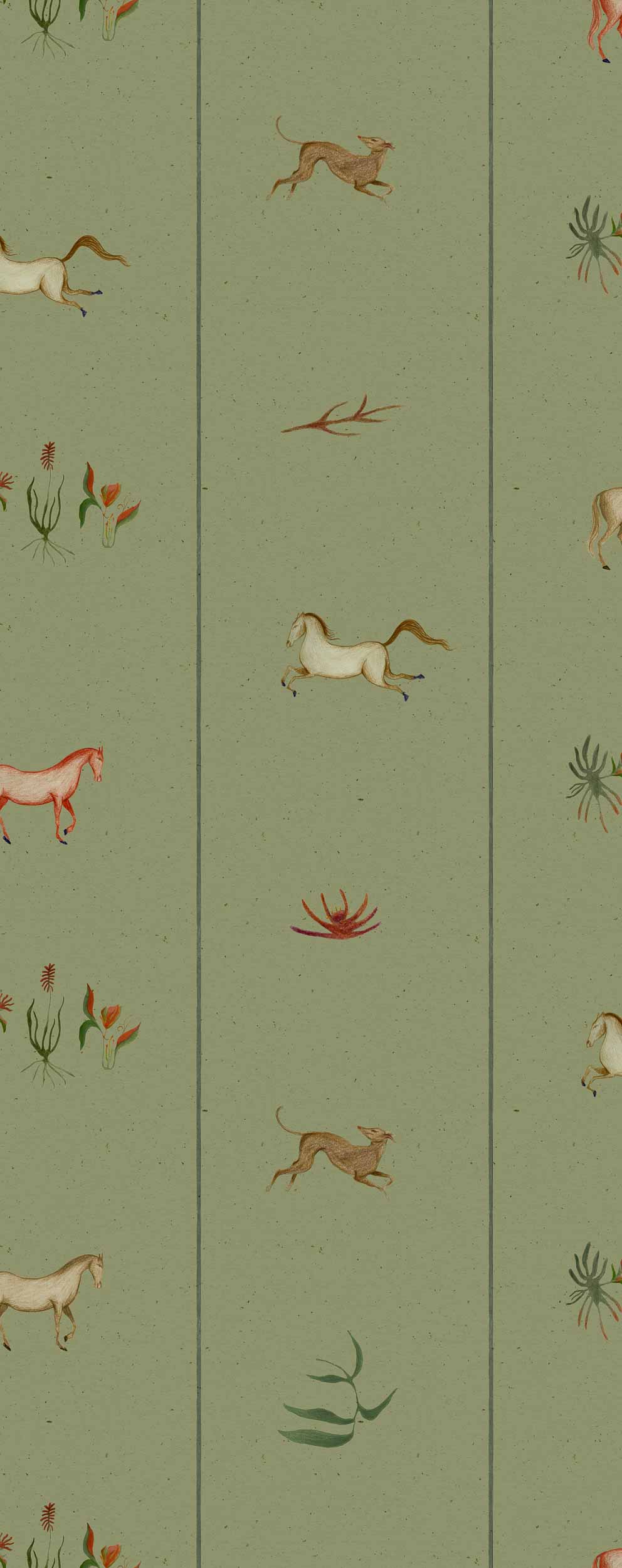 Tapetul Bike Ride, Green de la Coordonné este un design cu animale în tonuri de verde din colecția Central Saint Martins – Rest Time. Plimbările cu bicicleta prin locuri fermecătoare, unde totul este încă de descoperit poate fi o prioritate în viața oricui.