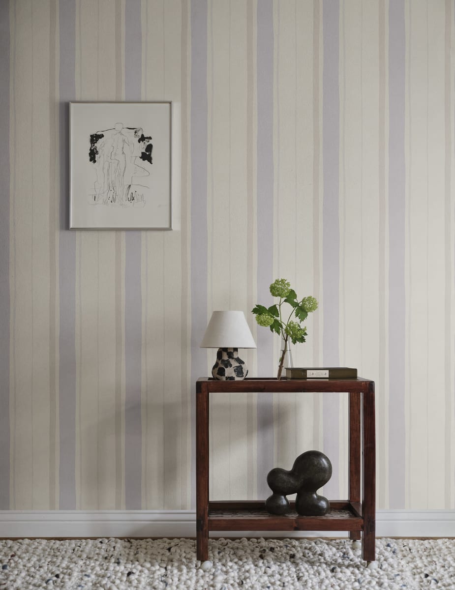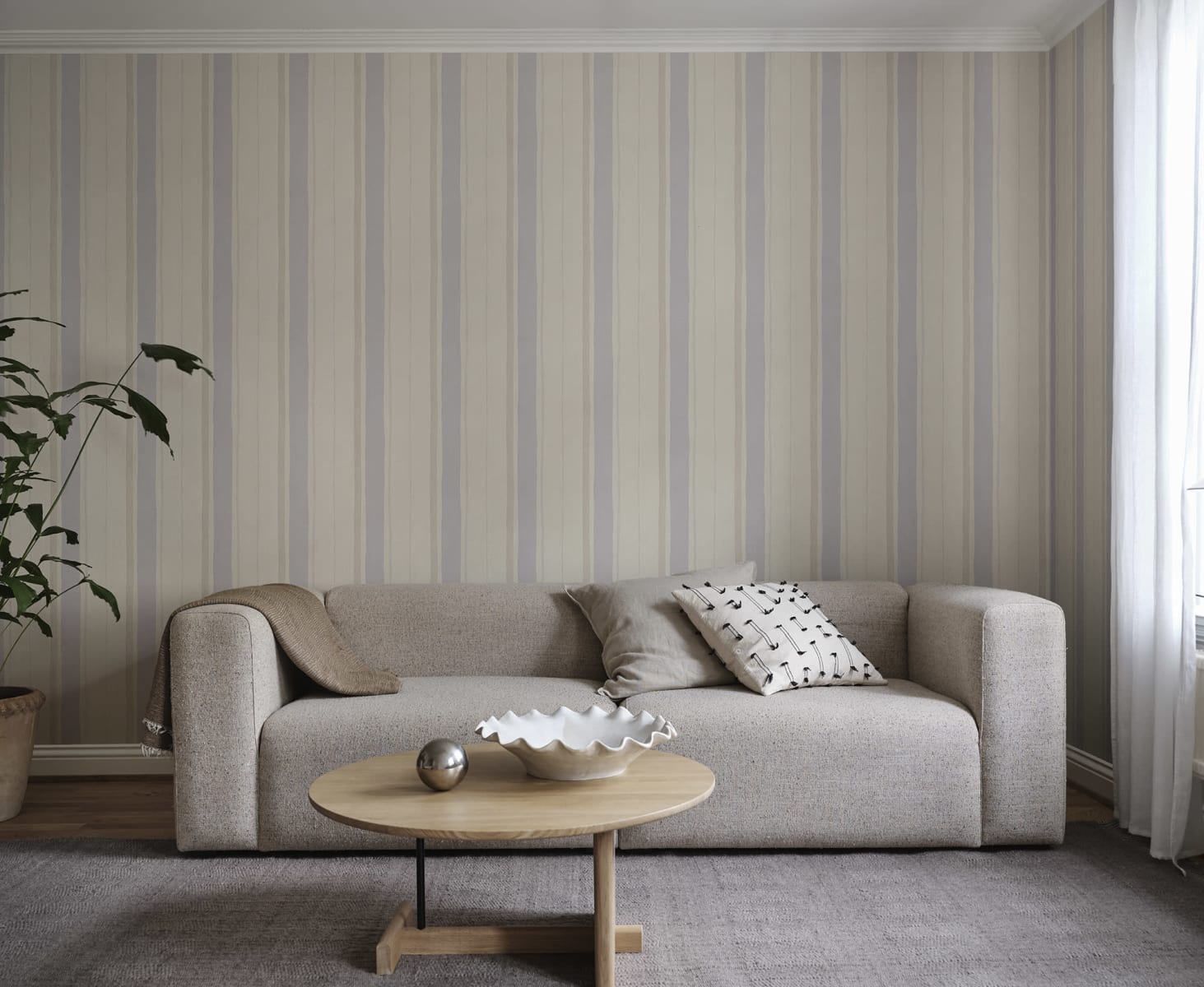 Tapetul nostru fermecător, Billie, este o interpretare contemporană și unică a clasicelor și mereu relevantelor dungi. Billie îmbracă frumos casa ta, oferindu-i o atmosferă atemporală și elegantă. Billie, Lilac, are o structură de in și dungi în nuanțe de liliac pal, maro și bej.