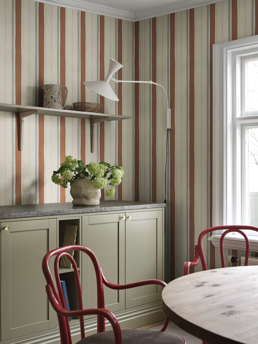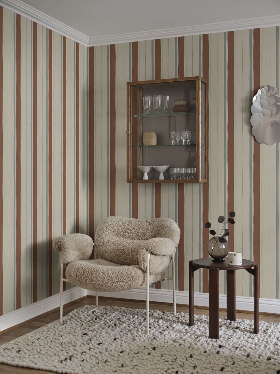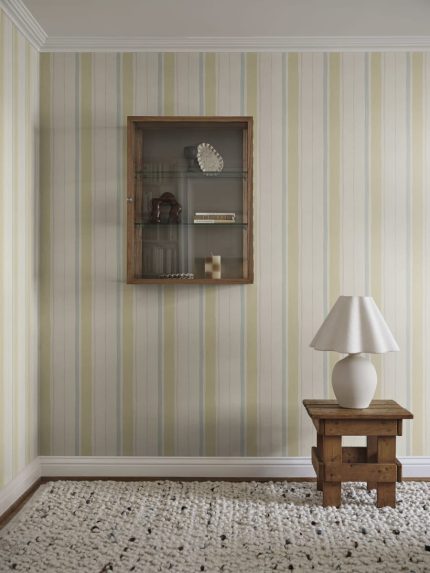 Acest tapet clasic, cu dungi late, se potrivește perfect într-o încăpere modernă, precum și într-o amenajare mai tradițională. Tapet >